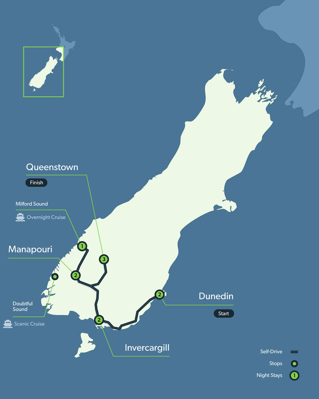 | Destinations | Doubtful Sound, Dunedin, Invercargill, Milford Sound, Queenstown, Te Anau |