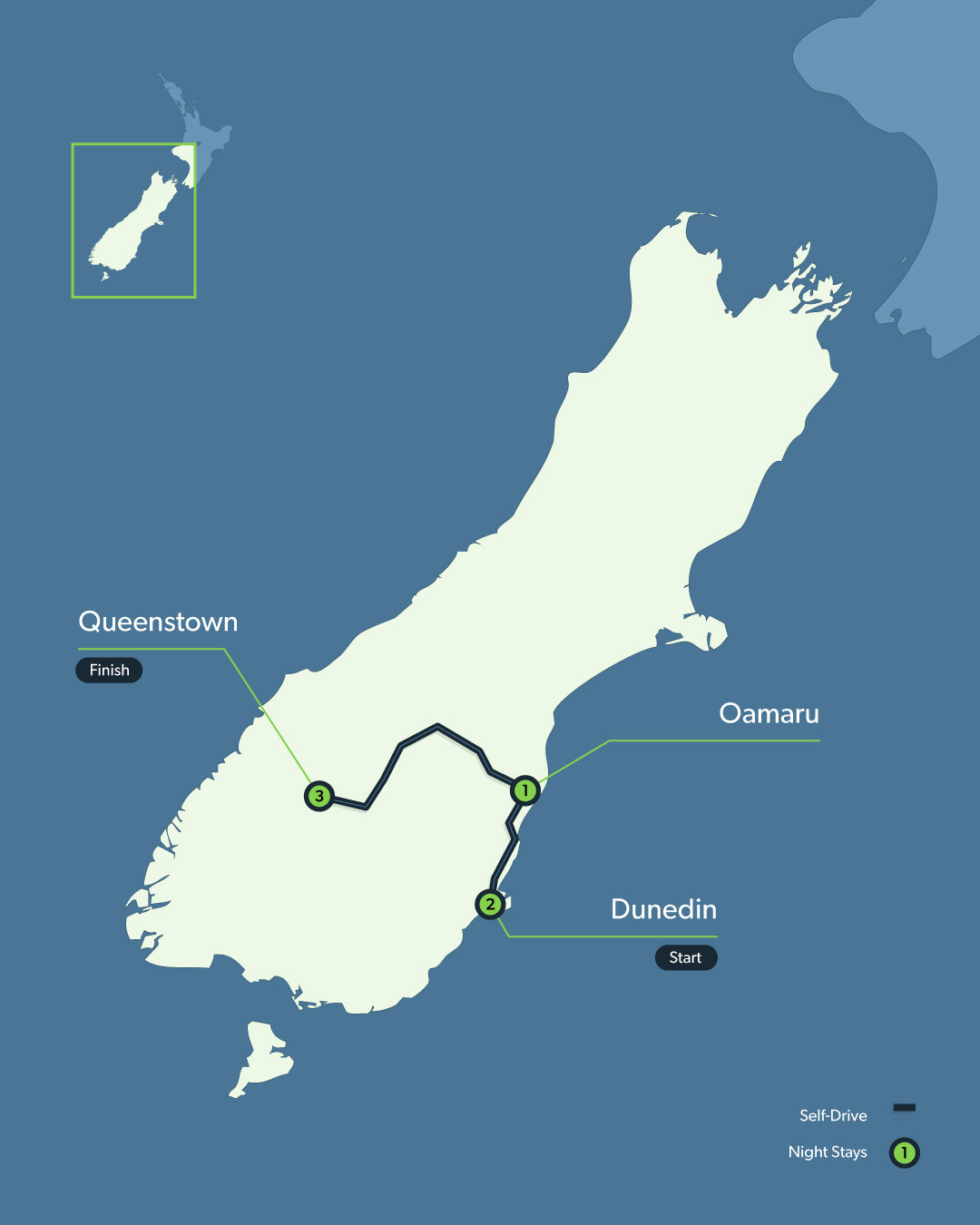 | Destinations | Dunedin, Oamaru, Queenstown |