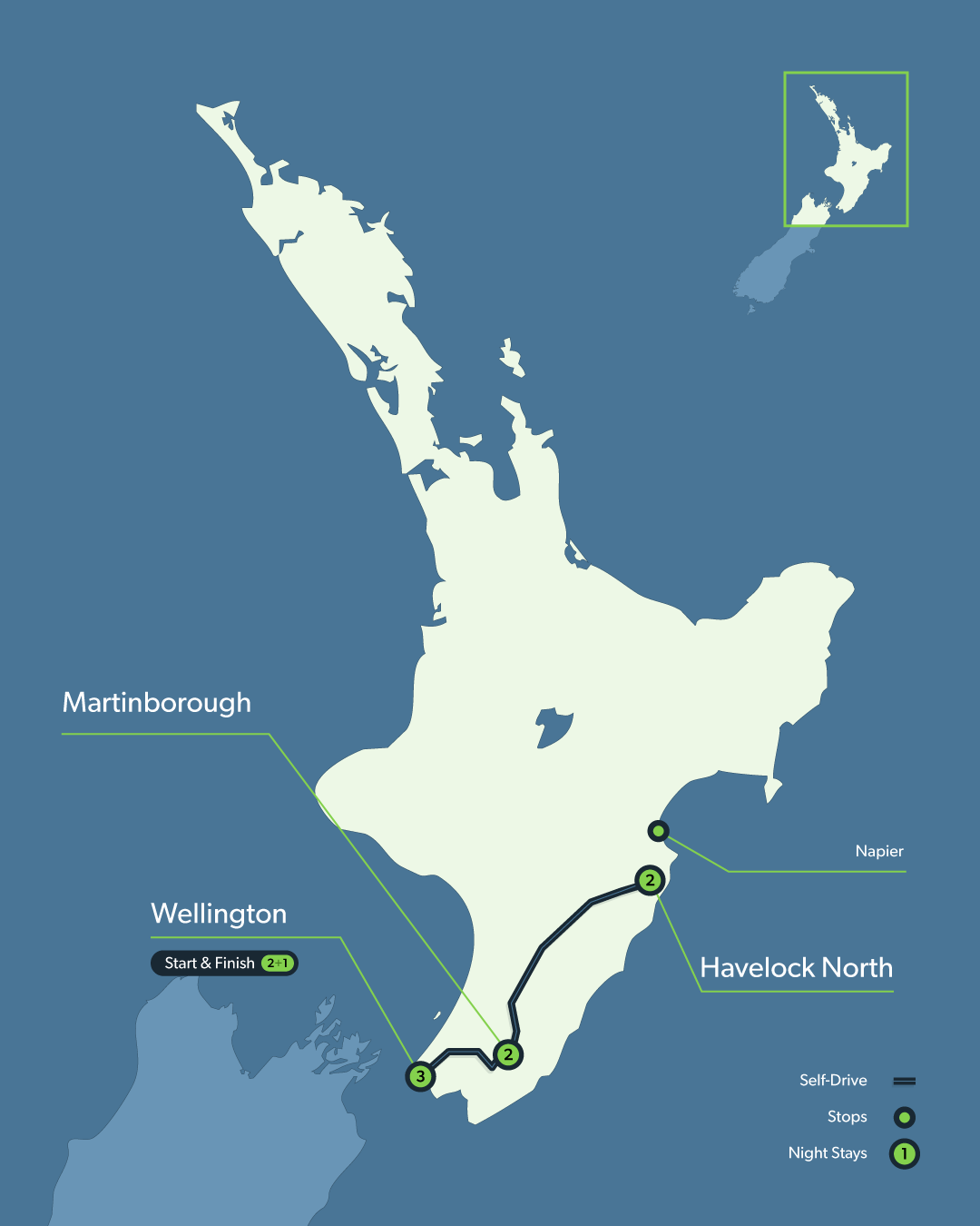 | Destinations | Martinborough, Wellington |