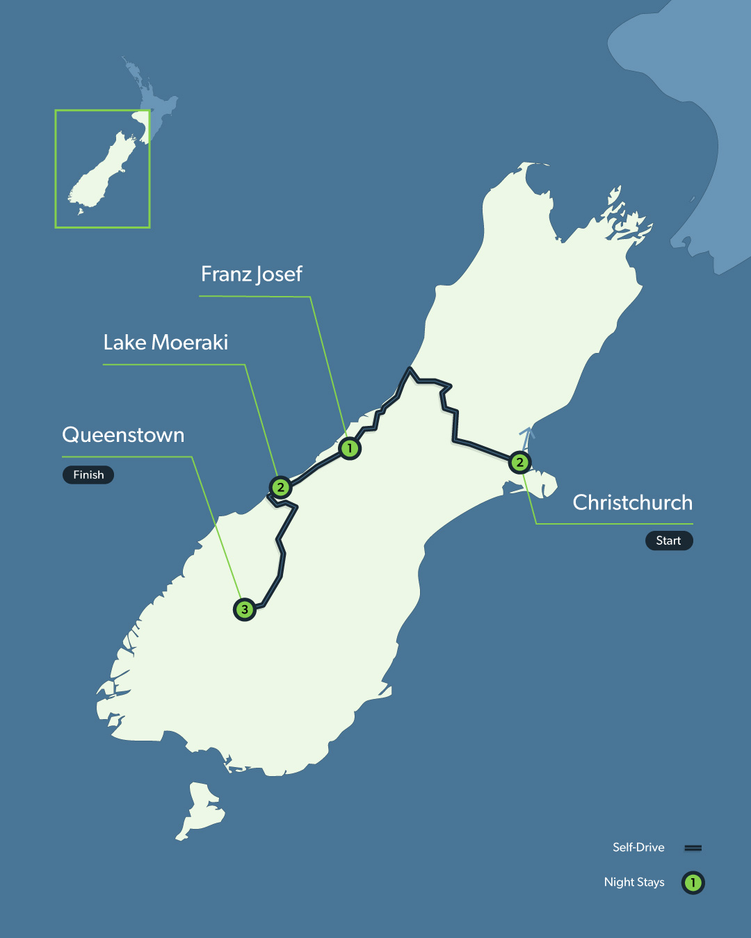 | Destinations | Christchurch, Franz Josef, Glenorchy, Lake Moeraki, Queenstown |