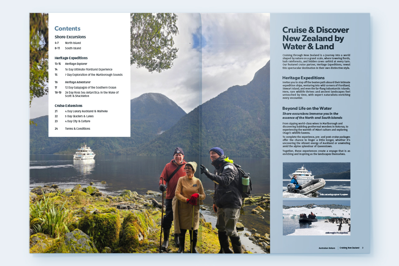 Brochure Cruising New Zealand Resources Brochures New Zealand Cruising New Zealand Published 10 Nov 2025 Validity 2025–2026 Pages 24 Currency Australian Dollar (AU$) View e-Brochure Share Expand